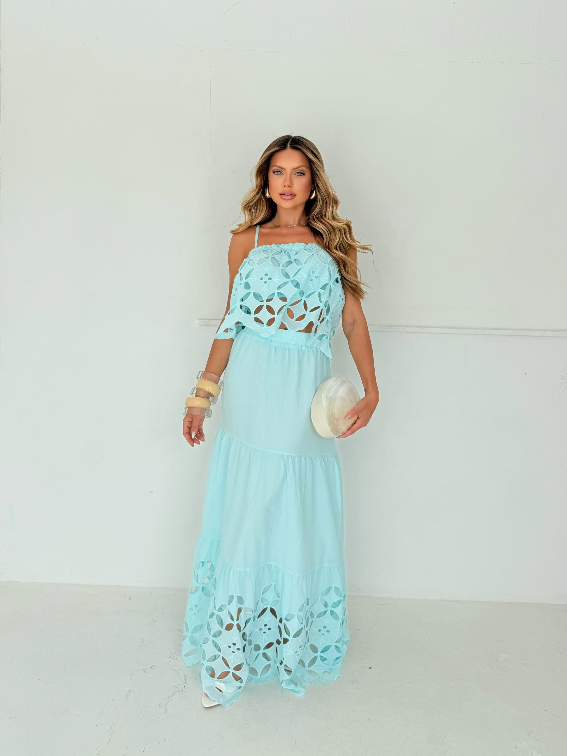 O statement de elegância noturna. Este Conjunto combina o drama atemporal do preto com a delicadeza romântica da renda branca, criando um visual poderoso, chic e perfeito para eventos noturnos ou festas.
